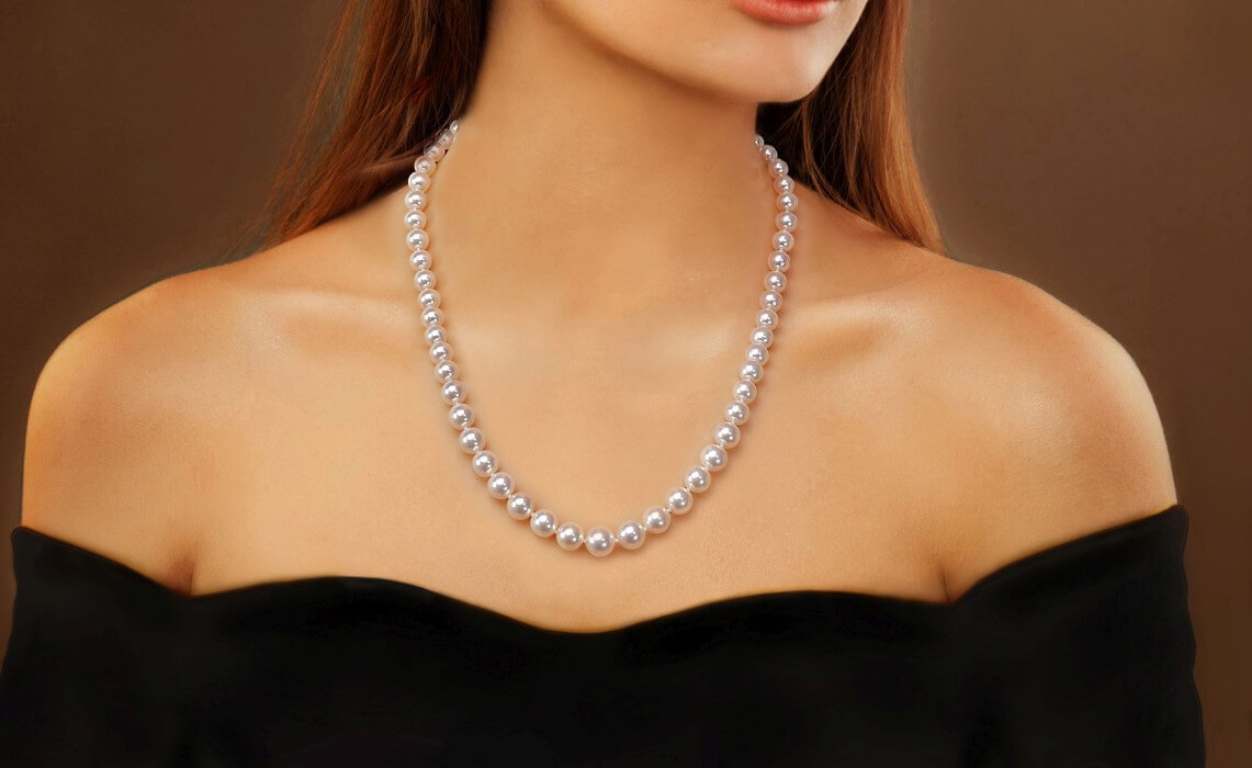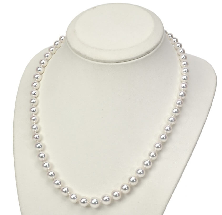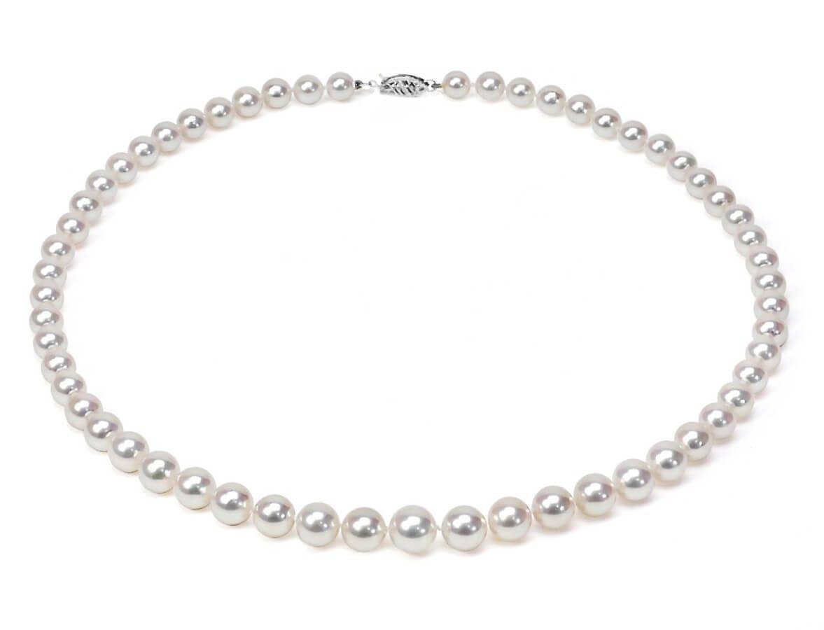 Jeszcze jeden stopniowany naszyjnik z pereł Akoya, tym razem o większych rozmiarach i w białym złocie. Perły o unikalnej jakości i niezwykłym pięknie - idealnie okrągłe, o nieskazitelnie gładkiej powierzchni i cudownym połysku - ułożone w sznur o stopniowanej wielkości, co nawiązuje do stylu retro i przypomina naszyjniki z królewskich kolekcji.